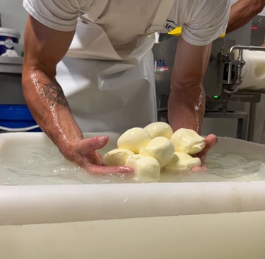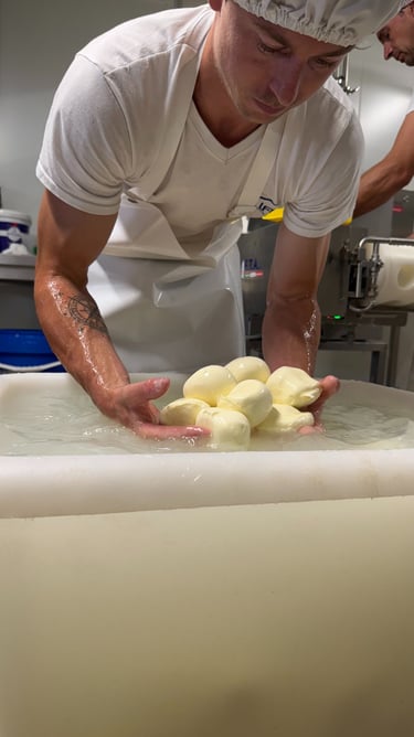 Découvrez en images et en vidéo les coulisses de la fabrication de notre mozzarella fermière. De la cuve à la mise en forme, entre gestes précis et savoir-faire artisanal, on vous emmène au cœur de notre atelier, là où le lait devient fromage.